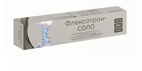 Флексотрон Соло средство для внутрисуставного введения шприц 22мг/мл, 2,2% 3,0мл шприц 1шт в наличии. Узнайте, как купить товар с бесплатной доставкой по Тольятти, Тольяттинскому городскому округу на странице «