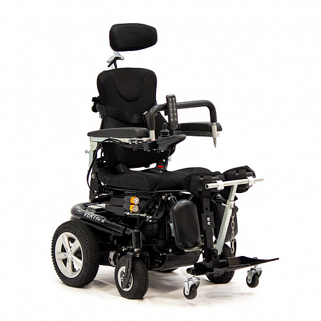 Кресло-коляска с электровертикализатором MET VERTIC 2 сочетает в себе функции электрического кресла-коляски, электроприводного вертикализатора и процедурной кушетки высотой до 81 см, потому что кресло, оснащённое электроактуаторным лифтом под сиденьем, раскладывается в горизонталь и может использоваться как ложе для медицинских манипуляций. Электроприводное шасси не теряет работоспособности ни в вертикальном, ни в горизонтальном положении кресла и этим может пользоваться больной и помогающие ему люди.