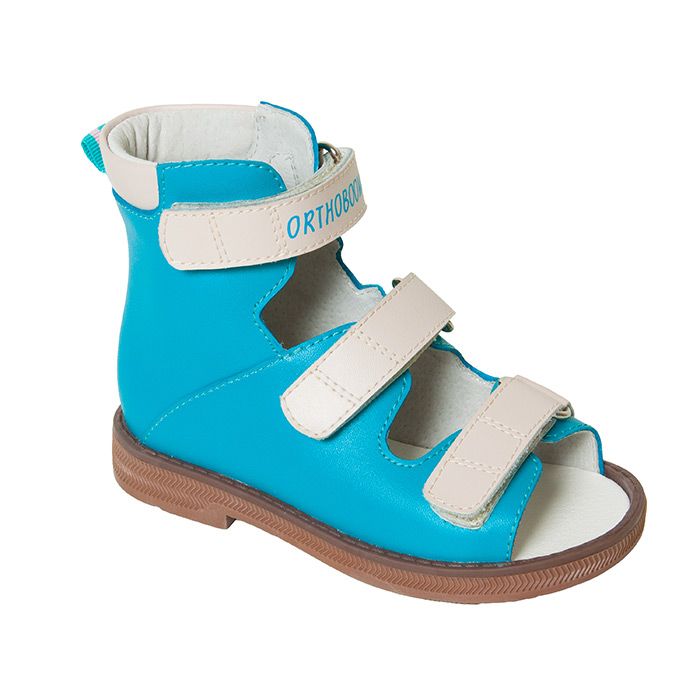 Сандали ортопедические Ортобум для мальчиков 71497-1 бирюзовый/бежевый ОРТОБУМ Описание Верх: натуральная кожа Подклад: натуральная кожа Стелька: натуральная кожа Подошва: резина Сандалии Orthoboom с высоким берцем. Эти ортопедические сандалии не только очень удобны для повседневной носки, но и позволяют правильно развивать стопу. Обувь с двухсторонним  высоким берцем, изготовленным с освобождением ахиллова сухожилия. Высокий жесткий берц фиксирует не только таранно-пяточный, но и голеностопный сустав, что при постоянном ношении этой обуви формирует правильное развитие суставных поверхностей и препятствует дальнейшему развитию деформации. Использование при этом съёмной сводоподдерживающей ортопедической стельки с углублением для размещения пятки позволяет правильно сформировать свод стопы. Показания Рекомендуется детям с наличием: выраженной плоско-вальгусной деформацией варусной деформацией эквинусной деформацией эквиноварусной деформацией поливарусной деформацией ДЦП парезы нижних конечностей Особенности Ортопедическая стелька и жесткий задник гарантируют правильное положение стопы. Каблук Томаса" регулирует нагрузку на зоны роста ног и стопу. Очень удобные застежки типа "Тейп" обеспечивают надежную фиксацию. Мягкий кант оберегает ногу от любых повреждений и делает ношение обуви намного комфортнее. Рифленая поверхность подошвы очень пластична и имеет деления на контрольные зоны, по которым можно определить неправильную нагрузку на стопу. Сандалии Ортобум изготовлены исключительно из натуральных материалов для максимального комфорта ног. Подбор размера Определите размер по следующей последовательности:     1. Поставьте ногу на чистый лист бумаги.     2. Отметьте крайние границы ступни.     3. Измерьте расстояние между самыми удаленными точками стопы.     4. Найдите соответствующий размер в таблице размеров, расположенной ниже. Видео Ортопедическая обувь Orthoboom   009344tol /upload/iblock/490/490f9c023e011fb817515538fc324c36.jpg